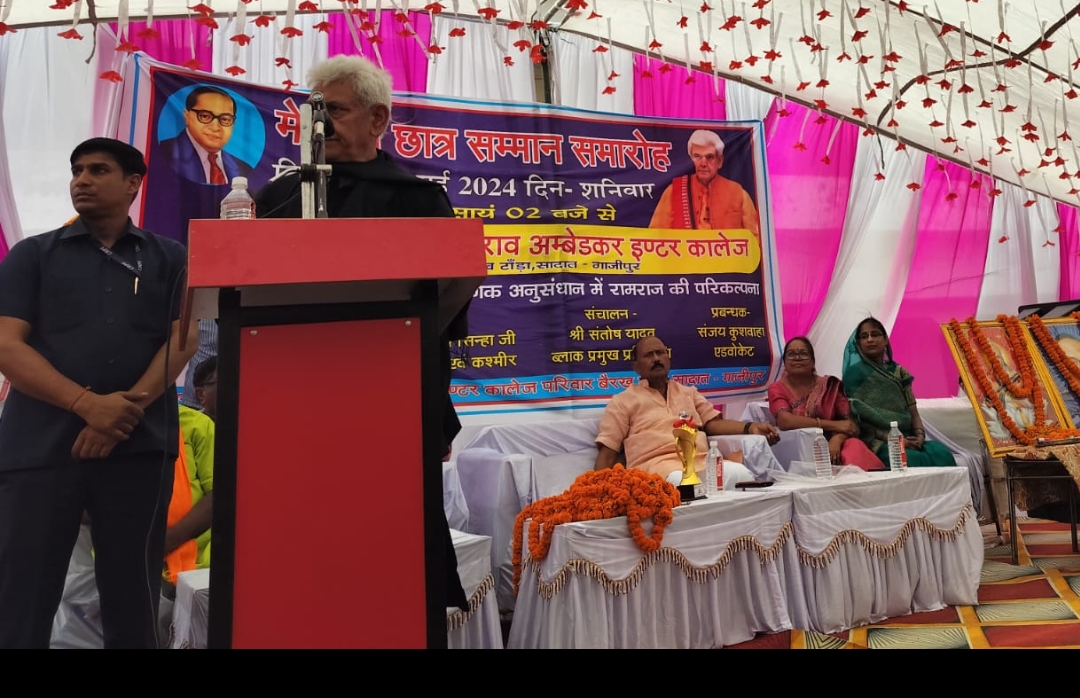 इसके अतिरिक्त उप राज्यपाल मनोज सिन्हा ने डा भीमराव अम्बेडकर इंटर कालेज, बैरख टांडा , सादात में मेधावी छात्र सम्मान समारोह एवं शैक्षणिक अनुसंधान में राम राज्य की परिकल्पना विषयक संगोष्ठी को संबोधित करते हुए कहा कि पिछले कुछ वर्षों में देश में जो बदलाव हुआ है उसमें सुराज, सुशासन, समावेशी समाज,समता की व्यवस्था पर काफी काम हो रहा है। इसके अनेक पहलुओं पर अध्ययन करने पर आठ दस वर्षों में आम आदमी के जीवन में जो बदलाव आया है, उसके दूरगामी परिणाम नजर आयेंगे। इस अवसर पर मनोज सिन्हा द्वारा विद्यालय के 14 छात्र छात्राओं को मेडल व प्रशस्ति पत्र देकर सम्मानित किया गया।