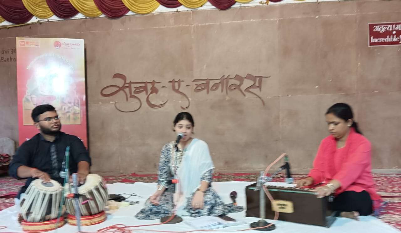 वाराणसी। विश्व प्रसिद्ध गंगा के अस्सी घाट के सुबह -ए- बनारस के प्रतिष्ठित सांस्कृतिक मंच पर आयोजित होने वाले “घाट संध्या “में प्रतिभावान गायिका विदुषी वर्मा ने अपनी गायिकी से श्रोताओं को मंत्र- मुग्ध कर दिया।