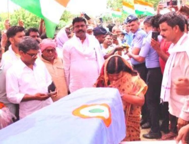 गाजीपुर। पानीपत में ड्यूटी के दौरान वीरगति को प्राप्त नंन्दगंज थाना क्षेत्र के ग्राम मुड़रभा निवासी वायुसेना में कार्यरत जितेंद्र कुमार कन्नौजिया का शव उनके गांव पहुंचने पर वहां लोगों का हुजूम उमड़ पड़ा। परिजनों में कोहराम मच गया। परिजनों के करुण क्रंदन से वहां मौजूद लोगों की आंखें नम हो गयी। बताया गया कि तीन भाईयों व दो बहनों में वह सवसेछोटा था। गमगीन माहौल में नम आंखों से लोगों ने शव पर पुष्प अर्पित कर श्रद्धांजलि दी। इसी क्रम में शहीद जितेंद्र कुमार का शव उनके पैतृक गांव पहुंचने पर राज्यसभा सांसद डा. संगीता बलवंत ने उनके शव पर पुष्पांजलि अर्पित कर श्रद्धांजलि दी। उन्होने कहा कि शहीद जितेंद्र कुमार के शहादत पर पूरे जिले को गर्व है।