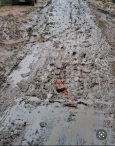 सड़क पर कीचड़ व जलजमाव से स्थिति नारकीय