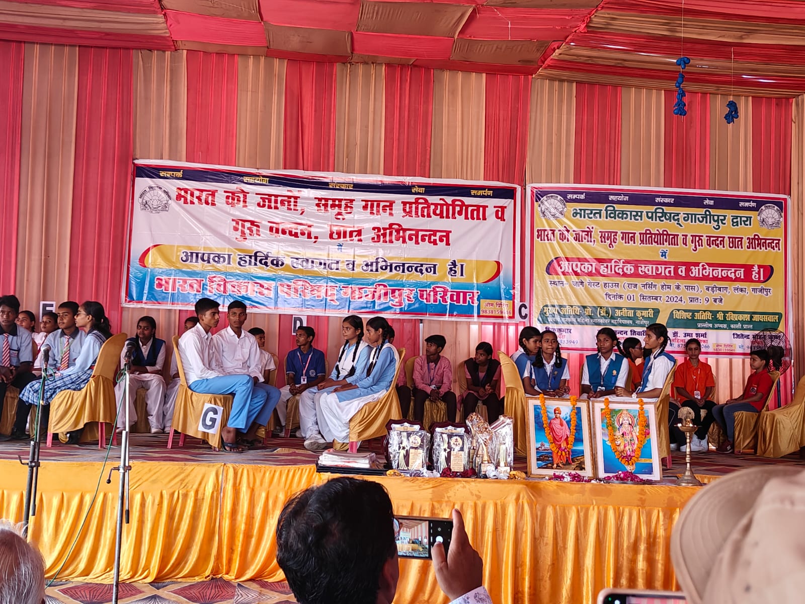 गाज़ीपुर। भारत विकास परिषद् द्वारा भारत को जानो प्रतियोगिता, गुरु वंदन, छात्र अभिनंदन एवं राष्ट्रीय समूह गान प्रतियोगिता सोमवार को सम्पन्न हुई । परिषद द्वारा आयोजित विभिन्न प्रतियोगिताओं में छात्र-छात्राओं ने बढ़कर हिस्सेदारी निभाई। कार्यक्रम का शुभारम्भ भारत तथा स्वामी विवेकानंद के चित्र पर पुष्पार्चन और दीप प्रज्वलन के पश्चात वंदे मातरम गीत के साथ किया गया। परिषद के संयोजक व प्रांतीय संपर्क प्रमुख संजय कुमार ने परिषद के बृहद सामाजिक कार्यों से अतिथियों को परिचित कराते हुए बैज अलंकरण कराया।