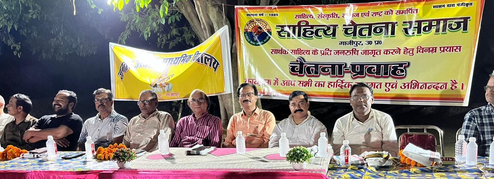 गोष्ठी का शुभारंभ महाकवि कामेश्वर द्विवेदी की वाणी-वंदना “वस्त्राच्छादित गात श्वेत हिम सा अत्यंत आह्लादक से हुआ। साहित्य चेतना समाज के संस्थापक अमरनाथ तिवारी अमर ने चेतना-प्रवाह कार्यक्रम के मूल उद्देश्य पर विशद प्रकाश डाला।