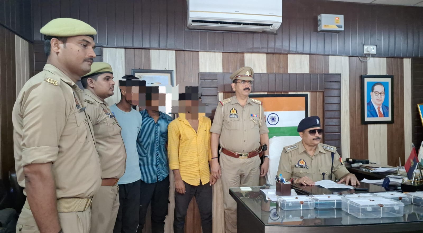 बताते चलें कि दिनांक 18/19 सितम्बर की रात में बकुलियापुर कोल्ड स्टोरेज के पास दो मोटर साइकिल पर सवार व्यक्तियों द्वारा वादी के कन्धें पर तमंचे के बट से मारते हुए वादी व उसके चचेरे भाई से मोबाइल व रुपये छीनने के सम्बन्ध में कोतवाली सदर पर मुकदमा पंजीकृत किया गया था। उक्त घटना के अनावरण में पुलिस टीम लगी थी। सोमवार को गड़वा चौकिया तिराहा थाना कोतवाली जनपद गाजीपुर से मुखबिरी सूचना के आधार पर पुलिस ने अभियुक्तगण सोनू कुमार पुत्र नन्दलाल राम निवासी ग्राम इस्लामाबाद थाना कोतवाली जनपद गाजीपुर, गौतम कुमार पुत्र लालबहादुर राम निवासी कादीपुर थाना करीमुद्दीनपुर जनपद गाजीपुर तथा सूर्यकान्त चंचल पुत्र अरविन्द कुमार शास्त्री निवासी ग्राम देवकठिया थाना जंगीपुर गाजीपुर को गिरफ्तार कर लिया गया इनके पास से कुल नौ मोबाइल, एक नाजायज तमंचा 315 बोर, दो जिन्दा कारतूस 315 बोर और एक मोटर साइकिल टीवीएस राइडर बिना नम्बर व एक मोटर साइकिल नं0 यूपी 61बीसी 6142 बरामद की गयी। अभियुक्तों के विरुद्ध विधिक कार्यवाही जारी है। अभियुक्तों को गिरफ्तार करने वाली पुलिस टीम में प्रभारी निरीक्षक दीन दयाल पाण्डेय, उपनिरीक्षक अभिराज सरोज, चन्द्रशंकर मिश्र, रोहित कुमार द्विवेदी तथा राजकुमार शुक्ल और आरक्षी रंजीत कुमार, धीरज गुप्ता, राजेश मौर्या, दीपक यादव व बृजेश यादव थाना कोतवाली गाजीपुर शामिल रहे।
