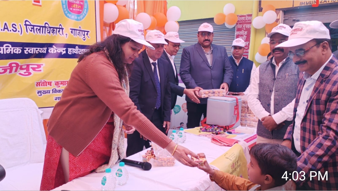 गाजीपुर। पल्स पोलियो अभियान का शुभारंभ रविवार को नगरीय प्राथमिक स्वास्थ्य केंद्र हाथीखाना पर जिलाधिकारी आर्यका अखौरी ने किया। इस अवसर पर जिलाधिकारी ने बच्चों के अभिभावकों से शत प्रतिशत बच्चों को पल्स पोलियो की खुराक पिलाने की अपील की। वहीं सामुदायिक स्वास्थ्य केंद्र मुहम्मदाबाद पर एसडीएम मुहम्मदबाद मनोज पठाज द्वारा पल्स पोलियो की खुराक पिलाकर कार्यक्रम का शुभारंभ किया गया। मुख्य चिकित्सा अधिकारी डॉ सुनील कुमार पांडेय ने बताया कि गाजीपुर जनपद में पल्स पोलियो अभियान के तहत साढ़े पांच लाख बच्चों को पोलियो की खुराक पिलाया जाने का लक्ष्य है। जिसके लिए कुल 2009 बूथ बनाए गए हैं और इन्हीं बूथों पर 0 से 5 साल तक के बच्चों को पल्स पोलियो की खुराक पिलाई जाएगी। उन्होंने बताया कि सोमवार से शुक्रवार तक घर-घर जाकर बच्चों को पोलियो की खुराक पिलाई जाएगी। वहीं छूटे हुए बच्चों को स्पेशल कार्यक्रम के तहत 16 दिसंबर को पल्स पोलियो की खुराक पिलाई जाएगी। सामुदायिक स्वास्थ्य केंद्र मुहम्मदाबाद के अधीक्षक डॉ आशीष राय ने बताया कि उनके क्षेत्र में कुल 126 केंद्रों के माध्यम से पल्स पोलियो की खुराक बच्चों को पिलाया जाएगा। इसके लिए कुल 24 सुपरवाइजर लगाए गए हैं। जिला प्रतिरक्षण अधिकारी डॉ सुजीत कुमार मिश्रा ने बताया पोलियो या पोलियोमेलाइटिस एक गंभीर और खतरनाक बीमारी है जो वायरस से होती है। यह वायरस एक व्यक्ति से दूसरे व्यक्ति तक फैलता है। साथ ही यह वायरस जिस भी व्यक्ति में प्रवेश करता है उसके मस्तिष्क और रीढ़ की हड्डी को गंभीर रूप से नुकसान पहुंचाता है जिसकी वजह से लकवा भी हो सकता है। उन्होने बताया 2014 से अभी तक भारत में पोलियो के एक भी रोगी नहीं देखे गए । यह दवा पाँच वर्ष से कम उम्र के सभी बच्चों के लिये आवश्यक है। यह दवा जन्म के समय, छठे, दसवें व चौदहवें सप्ता्ह में दी जाती है। इसके बाद 16 से 24 माह की आयु में बूस्टर की खुराक दी जाती है। पाँच वर्ष तक की आयु के बच्चों को बार-बार खुराक पिलाने से पूरे क्षेत्र में इस बीमारी से लड़ने की क्षमता बढ़ती है, जिससे पोलियो के विषाणु को पनपने से रोका जा सकता है। उन्होंने बताया कि इस चरण के लिए जिले भर में 2009 बूथ बनाए गए हैं। साथ ही 64 मोबाइल टीम भी बनाई गई है जिसके माध्यम से बूथ स्तर पर पोलियो अभियान चलाया जाएगा। इसके साथ ही अभियान के 948 टीमें बनाए गए हैं जो घर-घर जाकर बच्चों को पोलियो की दवा पिलाने का काम करेंगे। साथ ही बस स्टैंड और रेलवे स्टेशन पर पोलियो की खुराक पिलाने के लिए 85 टीम ने बनाई गई हैं। पल्स पोलियो के कार्यक्रम को सकुशल निपटाने के लिए एएनएम, आशा और आंगनवाड़ी कार्यकर्ती इसमें अपना सहयोग करेंगी।कार्यक्रम में अपर मुख्य चिकित्साधिकारी डॉ जयनाथ सिंह, डॉ मनोज कुमार 