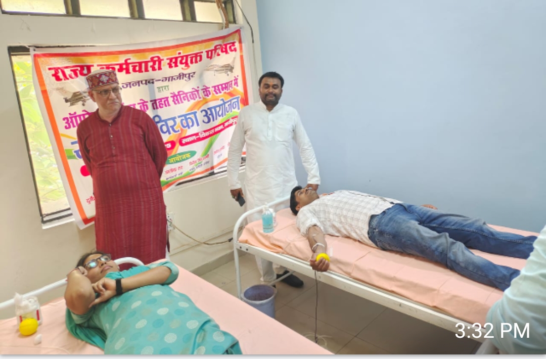 गाजीपुर। राज्य कर्मचारी संयुक्त परिषद द्वारा ऑपरेशन सिंदूर के तहत सैनिकों के सम्मान में रक्तदान शिविर का आयोजन सोमवार को विकास भवन में सम्पन्न हुआ। इसमें युवा कल्याण विभाग से पांच क्षेत्रीय युवा कल्याण अधिकारी अखिलेश कुमार यादव, चंद्रकांत यादव, मो. वकार खान, किशन चन्द्र और सुश्री आंचल सिंह द्वारा एक एक यूनिट रक्तदान किया गया।