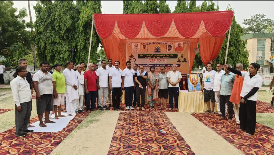 गाज़ीपुर। आयुष विभाग एवं जिला प्रशासन के निर्देशन में ग्यारहवें अंतरराष्ट्रीय योग दिवस के अवसर पर रविवार को योग सप्ताह का शुभारंभ गांधी पार्क आमघाट में किया गया।