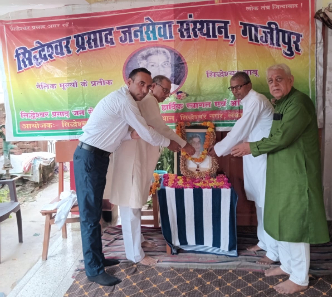 गाजीपुर। सिद्धेश्वर प्रसाद जनसेवा संस्थान, सिद्धेश्वर नगर, लंका के सभागार में पूर्व विधायक, पूर्व जिला पंचायत अध्यक्ष, स्वतंत्रता सेनानी स्वर्गीय सिद्धेश्वर प्रसाद सिंह की ४५वीं पुण्य तिथि ससमारोह मनाईं गई। इस अवसर पर स्व. सिद्धेश्वर प्रसाद सिंह के चित्र पर पुष्पांजलि अर्पित कर श्रद्धांजलि अर्पित की गयी। इस अवसर पर उनके व्यक्तित्व और कृतित्व पर चर्चा करते हुए वक्ताओं ने आज के नेताओं से उनके आदर्शों पर चलने की आवश्यकता पर बल दिया।”वर्तमान लोकतंत्र में राजनीतिक दलों की भूमिका” विषयक गोष्ठी में वक्ताओं ने चर्चा की। गोष्ठी के मुख्य वक्ता माधव कृष्ण ने कहा कि आदर्श देश वही है जहां आमजन की समस्याओं को सुलझाया जा सके। लोक एवं तंत्र यद्यपि एक दूसरे के विरोधी हैं जिसे हमने जबरदस्ती जोड़ रखा है, तथापि आज भी लोकतंत्र की मजबूती तथा लोकमत बनाने के लिए जमीनी लोगों की जरूरत है जो गहराई तक सोच सकें।