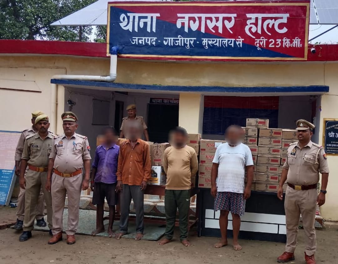 गाज़ीपुर। नगसर हाल्ट थाना पुलिस टीम ने चार शराब तस्करों को गिरफ्तार कर उनके कब्जे से 788.28 लीटर अवैध अंग्रेजी व देशी शराब तथा बियर बरामद करने में सफलता प्राप्त की है। बरामद शराब की अनुमानित कीमत लगभग साढ़े चार लाख रुपए बताई गई है। अपराधियों के विरुद्ध चलाए जा रहे अभियान के तहत मुखबिर की सूचना पर, थानाध्यक्ष नगसर हाल्ट अभिराज सरोज मय हमराह व वरिष्ठ उपनिरीक्षक शिवाकान्त मिश्रा मय हमराह थाना नगसर जनपद गाजीपुर ने चेकिंग के दौरान ग्राम असांव से दो ट्रैक्टर ट्रॉली को रोककर तलाशी ली तो ट्रालियों पर लदे ईंटों के बीच से 10 पेटी बियर(अंग्रेजी), 20 पेटी देशी शराब, 55 पेटी अंग्रेजी शराब बरामद हुई। बरामदगी के आधार पर दोनों ट्रैक्टर से चार लोगों को गिरफ्तार किया गया । गिरफ्तार अभियुक्तों में हरिराम पुत्र स्व. विलेश्वर राम निवासी नौली थाना रेवतीपुर गाजीपुर, छोटू पुत्र स्व. बुधमल निवासी बोंगा लोहदरा थाना लोहदरा जनपद राची झारखण्ड, कृष्ण कुमार राम उर्फ डब्लू राम पुत्र स्व. नरसिंह राम निवासी असांव थाना नगसर हाल्ट गाजीपुर तथा नारायण राम पुत्र स्व. नन्द किशोर राम निवासी मोनहरिया थाना जमानियां गाजीपुर रहे। गिरफ्तारी व बरामदगी के आधार पर थाना पर आबकारी अधिनियम का अभियोग पंजीकृत कर विधिक कार्यवाही की गयी।