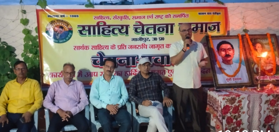 गाजीपुर। ‘साहित्य चेतना समाज’ के तत्वावधान में ‘गोस्वामी तुलसीदास एवं मुंशी प्रेमचन्द की जयन्ती पर विचार गोष्ठी-सह काव्य गोष्ठी सम्पन्न हुई। वरिष्ठ अधिवक्ता सीताराम गुप्त की अध्यक्षता एवं डाॅ.अक्षय पाण्डेय के संचालन में आयोजित कार्यक्रम का शुभारंभ मुख्य वक्ता केन्द्रीय विद्यालय,गाजीपुर के प्रवक्ता नीरज राय द्वार गोस्वामी तुलसीदास एवं मुंशी प्रेमचन्द के चित्र पर माल्यार्पण एवं दीप-प्रज्वलित कर किया गया। नेहरू युवा केन्द्र’,गाजीपुर के लेखाकार एवं आयोजक सुभाष चन्द्र ने कवियों एवं आगंतुक श्रोताओं का वाचिक स्वागत किया। महाकवि कामेश्वर द्विवेदी की वाणी-वन्दना के उपरांत डॉ अक्षय पाण्डेय ने विचार-गोष्ठी के विषय-प्रवेश के रूप में गोस्वामी तुलसीदास एवं मुंशी प्रेमचन्द के व्यक्तित्व-कृतित्व के साथ ही उनकी साहित्यिक विशिष्टता और युगानुकूल अवदान को रेखांकित किया। मुख्य वक्ता नीरज राय ने गोस्वामी तुलसीदास एवं मुंशी प्रेमचन्द पर केन्द्रित अपने सारगर्भित वक्तव्य में कहा कि ” गोस्वामी तुलसीदास ने मुगलकाल में जनता में व्याप्त नैराश्य को पुरुषोत्तम भगवान राम की भक्ति और उदात्त चरित्र के माध्यम से दूर कर नवचेतना का संचार किया। प्रेमचन्द स्वातंत्र्य के न सिर्फ स्वप्नद्रष्टा थे अपितु अपनी रचनाओं के माध्यम से उसकी पूर्व-पीठिका भी तैयार कर रहे थे।”