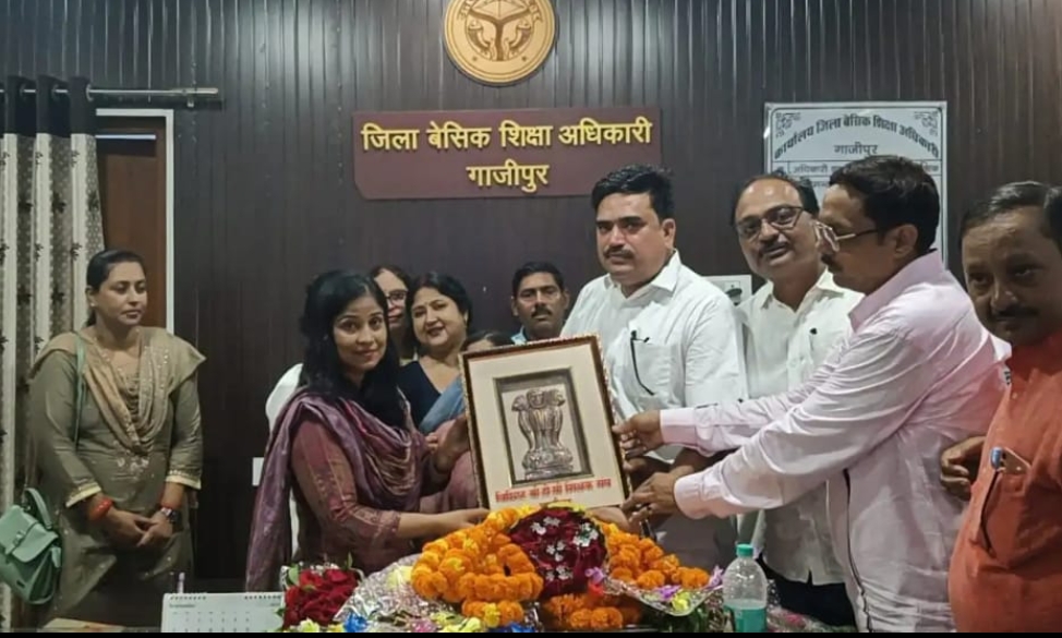 गाजीपुर। नवागत जिला बेसिक शिक्षा अधिकारी उपासना रानी वर्मा के कार्यभार ग्रहण करने के उपरांत शुक्रवार को विशिष्ट बीटीसी शिक्षक वेलफेयर एसोसिएशन उ0प्र0, राष्ट्रीय शैक्षिक महासंघ गाजीपुर, यूटा शिक्षक संघ, शिक्षा मित्र संघ, अनुदेशक संघ ने संयुक्त रूप से महुआबाग स्थित बेसिक कार्यालय पर उन्हें पुष्प गुच्छ व प्रतीक चिह्न देकर स्वागत किया।