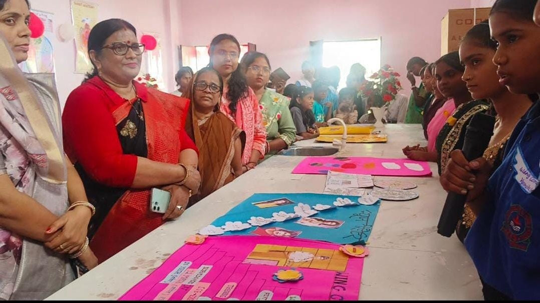 मुख्य अतिथि नगर पंचायत अध्यक्ष श्रीमती सुमन यादव ने कैरियर मेले का उद्घाटन कर कैरियर हब कक्ष में प्रदर्शित छात्राओं के पोस्टर, चार्ट और रंगोली का निरीक्षण कर उनकी चित्रण और कला की सराहना की।
