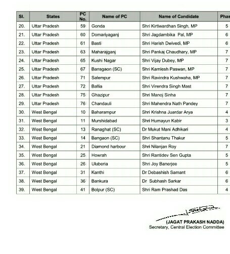 गाजीपुर (उत्तर प्रदेश), 26 मार्च 2019। लोकसभा चुनाव के लिए भाजपा ने अपनी बैठक के बाद अपने 39 लोकसभा प्रत्याशियों के नामों की घोषणा की है। गाजीपुर संसदीय सीट से भाजपा नेतृत्व ने एक बार फिर मनोज सिन्हा के नाम पर मुहर लगाई है। मनोज सिन्हा के गाजीपुर से प्रत्याशी घोषित होने के बाद तरह तरह की चल रही अटकलों पर स्वतः विराम लग गया।
