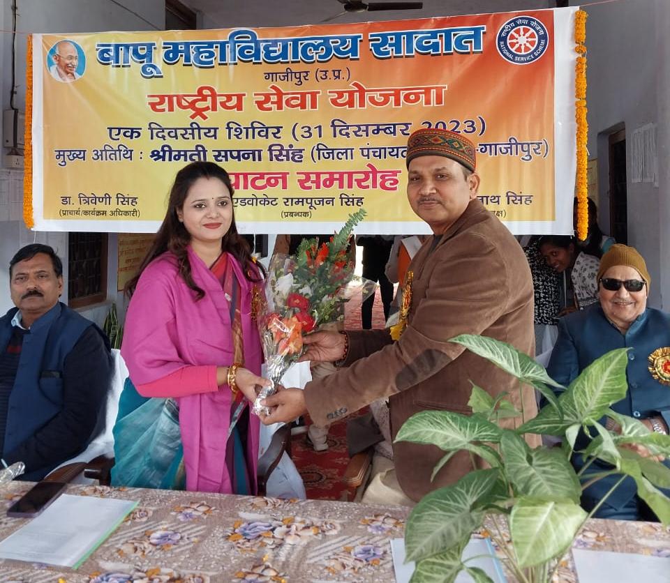 गाजीपुर। युवा एवं खेल मंत्रालय भारत सरकार के पोर्टल माई भारत के निर्देशानुसार बापू महाविद्यालय सादात में रविवार को राष्ट्रीय सेवा योजना का एक दिवसीय शिविर सम्पन्न हुआ।