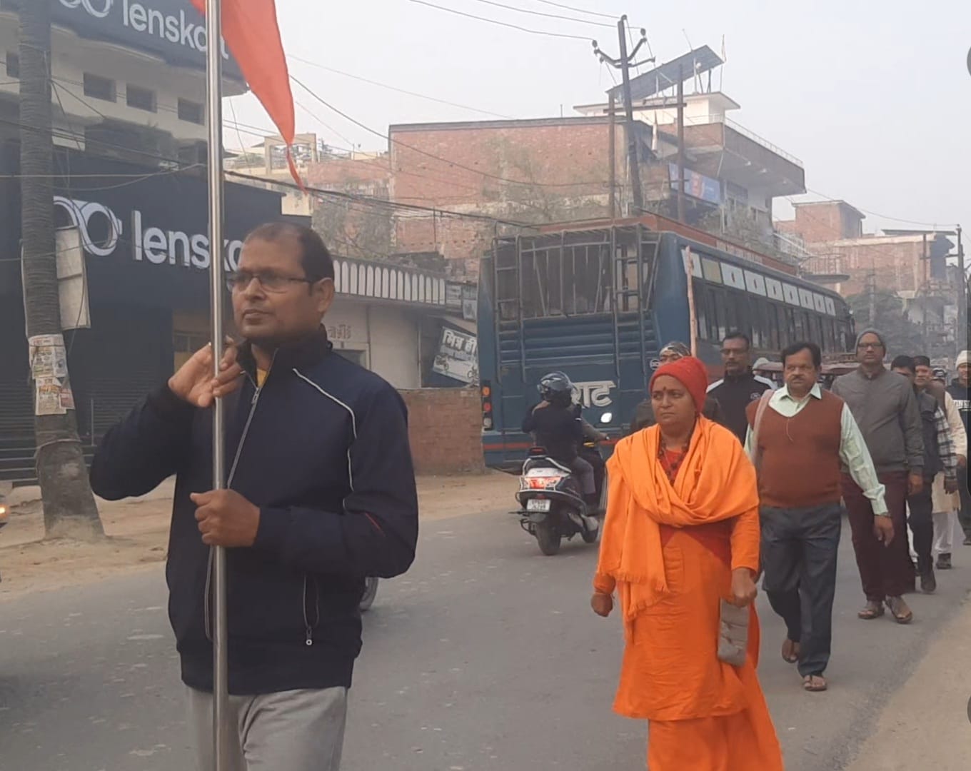 गाजीपुर। भारत दर्शन के उद्देश्य को लेकर गत वर्ष से प्रारंभ हुई भारत भ्रमण यात्रा के दौरान सांध्वी सुमनपुरी दीदी सोमवार को गाजीपुर नगर में पहुंची।नगर के माधव बस्ती में अपर शासकीय अधिवक्ता नीरज के आवास पर प्रातः काल संघ प्रार्थना के समापन के पश्चात भगवा ध्वज के नेतृत्व में नगर यात्रा प्रारंभ हुई।